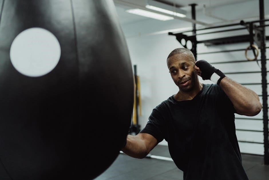 Bag work, a central component of any boxing workout routine PDF, builds power, endurance, and combination accuracy․ It allows boxers to practice delivering punches with force and refining their striking technique against a stationary target․